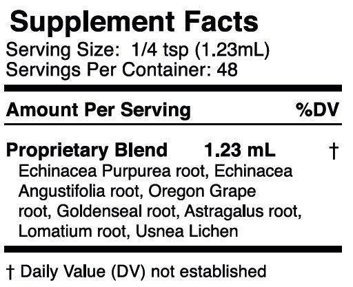 Go Nutrients Immune Booster is a liquid herbal supplement designed to enhance your immune system's functioning. It contains a blend of echinacea, Oregon grape root, goldenseal, astragalus, lomatium, and usnea lichen, among other ingredients, which work together to provide immune support, anti-inflammatory benefits, and antimicrobial action.