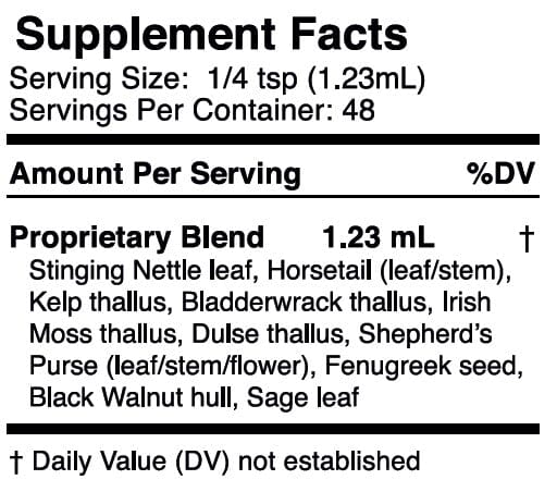 Black walnut hull and horsetail contribute to this healing blend by supporting the body’s detox processes, gently cleansing the system of toxins that can affect thyroid function and overall health.